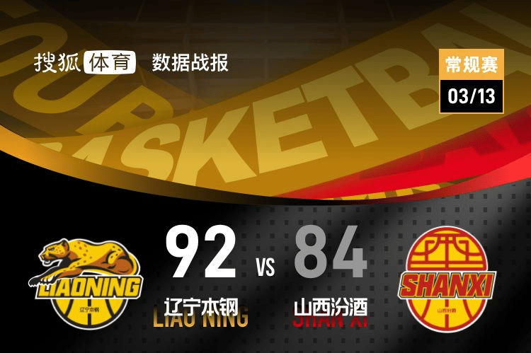 【搜狐体育战报】北京时间3月13日CBA常规赛第25轮,主场作战的辽宁本钢以92-84击败山西汾酒,辽宁本钢取得4连胜。鄢手骐16分1篮板1助攻,哈米杜·迪亚洛25分10篮板4助攻。