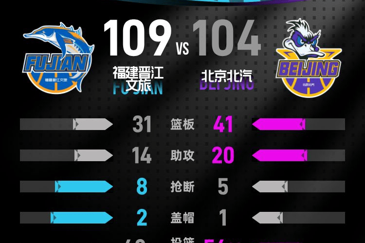北京北汽队:贾维尔·麦基22分10篮板2助攻、尤金·杰曼20分2篮板3助攻、周琦15分10篮板1助攻、雷蒙14分1助攻、奥马里-斯佩尔曼12分4篮板、陈盈骏11分3篮板4助攻、赵睿6分2篮板5助攻、翟晓川4分2篮板、方硕1篮板、维克特·贝利2助攻、张才仁4篮板2助攻。