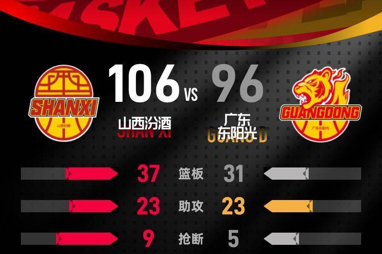 进入第四节比赛,奎因连续上篮得分缩小分差,焦海龙接助攻命中三分,帮助山西再次拉开分差。贾明儒接奈特助攻命中三分,分差来到两位数。杜润旺回敬三分把分差缩小到5分,张宁、贾明儒连续得分稳住局势。最后一分钟麦考尔连续得分追赶比分,将分差缩小到8分,山西稳稳罚中两球,最终以106-96击败广东。