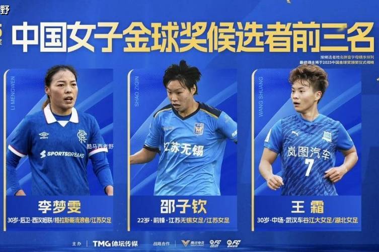 今天2025年度女足金球奖的三名候选人名单出来了,武汉女足的王霜、江苏女足的邵子钦和苏超流浪者女足的李梦雯入列,还有武汉女足门将陈晨和成都蓉城的刘殿座以及上海海港的颜骏凌入围金手套三人组。
